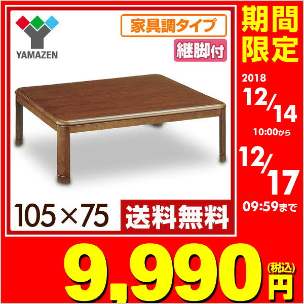 家具調こたつ 和洋風こたつ (105×75cm 長方形)継脚付き WG-1053H(MB) 電気こたつ こたつヒーター こたつテーブル コタツ こたつ おしゃれ テーブル 机 デスク 山善 YAMAZ